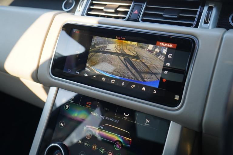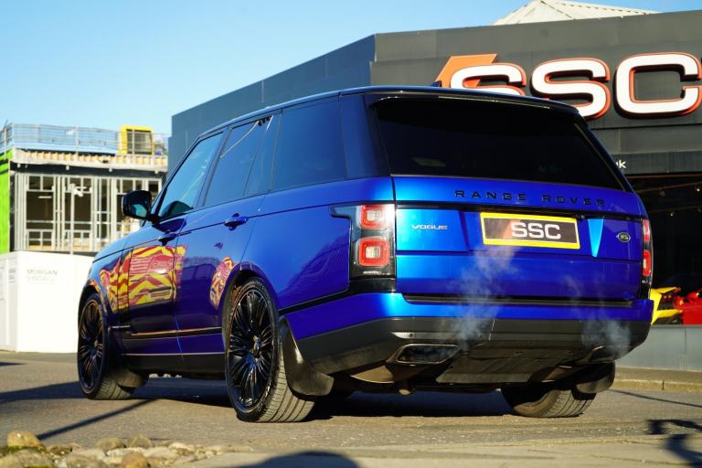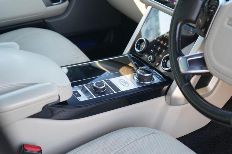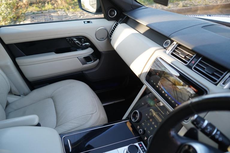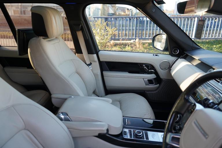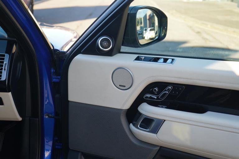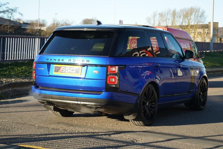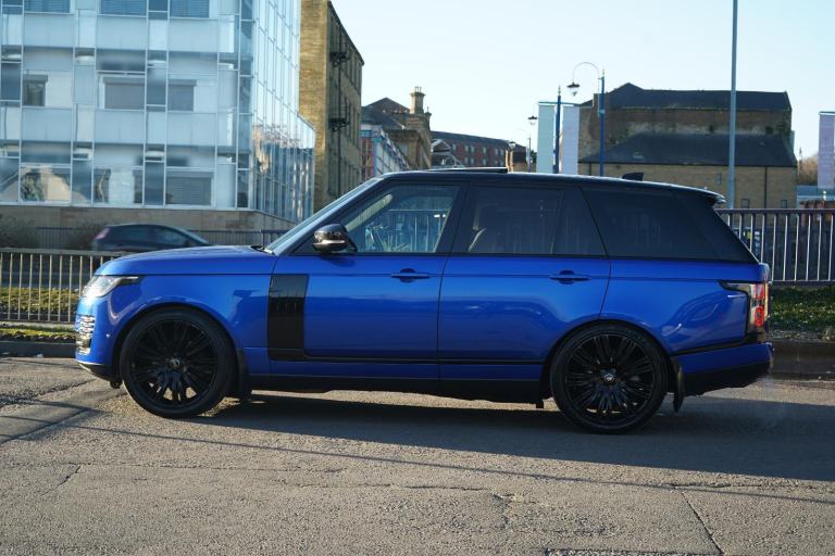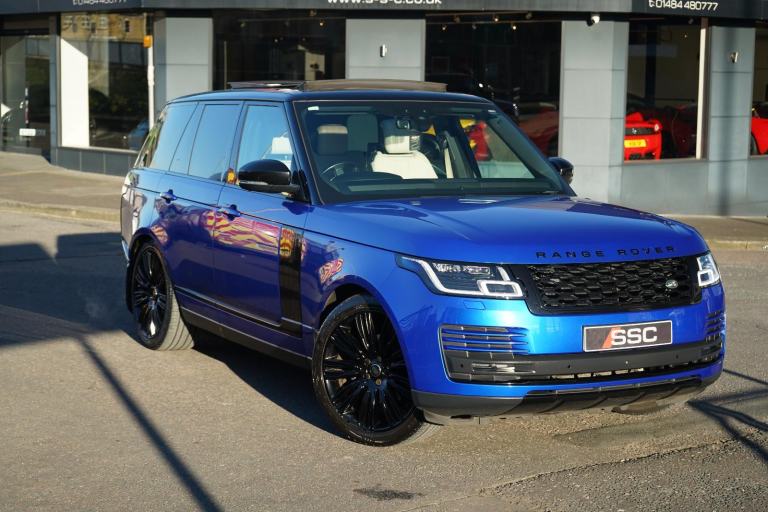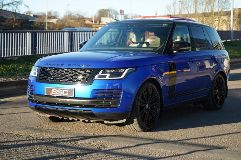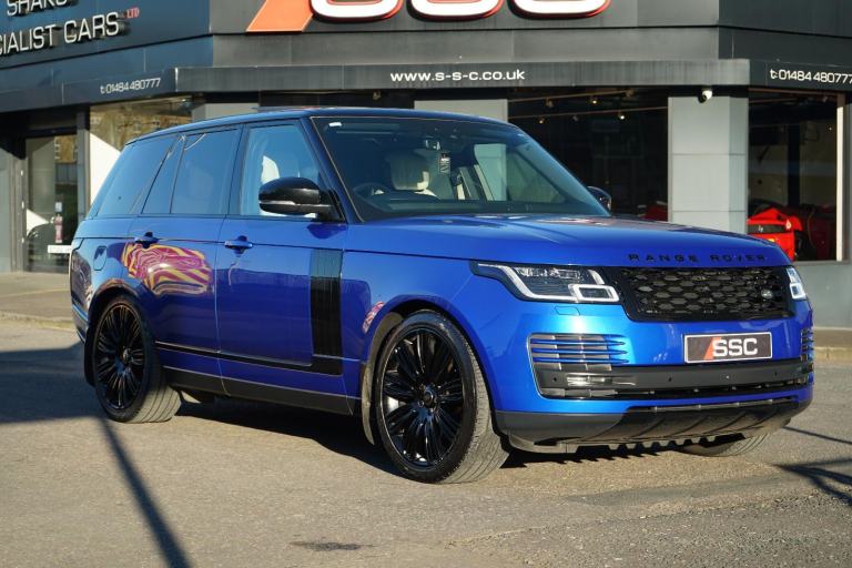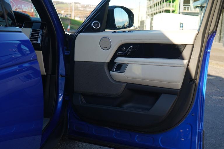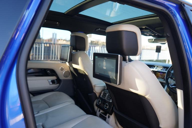 Stunning Vogue Finished In SVO Premium Palette Velocity Blue With Ivory Perforated Windsor Leather Interior. Fantastic Spec Inc: Rear Entertainment System, Upgrade 22" Alloys, Black Exterior Pack, Panoramic Sliding Sunroof, Back Contrast Roof, Surround Cameras. Refrigerator Compartment, Front Fog Lights, Meridian Sound System, Sat/Nav With Bluetooth Phone Prep, DAB, AUX, USB, Digital TV Tuner, Lane Departure Warning, Heated Front Seats, Powered Rear Heated Seats, Front & Rear Parking Sensors With Rear Camera, Power Operated Tailgate, LED Headlights With Signature Daytime Running Lights, Light/Rain Sensors, Multi Function Facelift Steering Wheel With Paddleshift Gear Change, Electrically Heated Steering Wheel With Memory Function, Electric Folding Mirrors With Memory Function, Heated Mirrors, Auto Dimming Mirrors, Privacy Glass, Air Suspension, Hill Descent Control, Cruise Control, Front & Rear Climate Control, A/C, Computer.