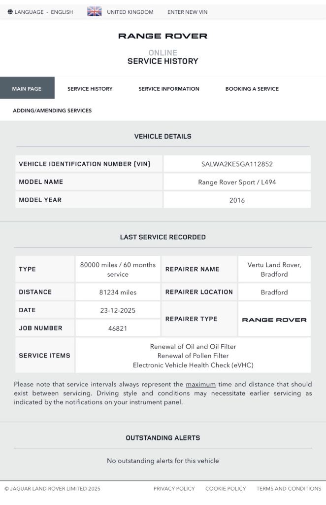 Recently serviced December 2025 at Land Rover (80,000-mile service) including: