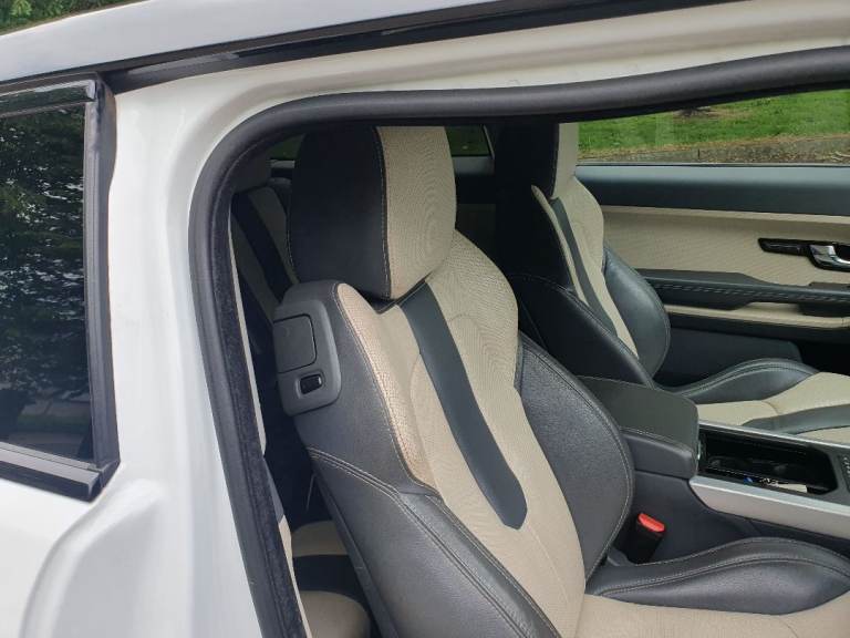 Here for sale is my range rover evoque 2.2 dynamic sd4a coupe one previous owner from 13 plate moted 14 August 2026 full heated leather interior and steering wheel with controls daytime running lights panoramic roof with sliding blind 20 " alloys 380w 10 speakers meridian surround sound dynamic stability control bonnet louvres narvik black with side vents work done