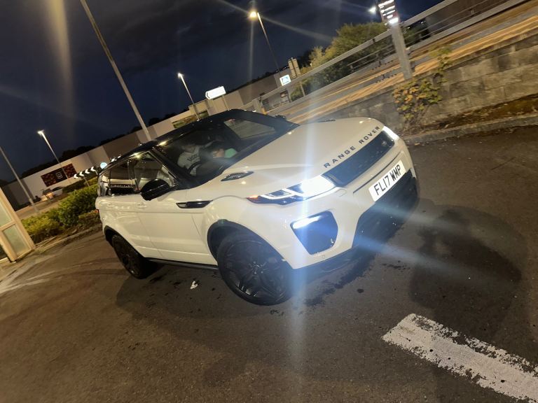This stunning white Range Rover Evoque combines luxury, performance, and style in one eye-catching package. Finished in a clean white exterior with a contrasting black roof and black alloy wheels, it has a bold, modern look that really stands out—especially at night with its signature LED lighting.