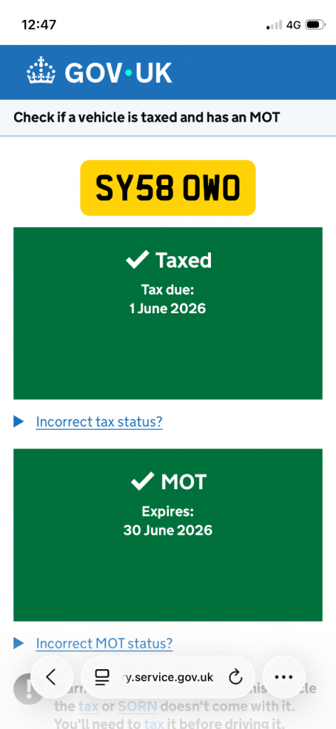 This vehicle has not been reported stolen, scrapped, exported or flagged as unroadworthy.