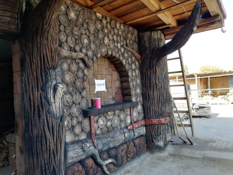 • Concrete with wood imitation (columns, beams, fences, pergolas)