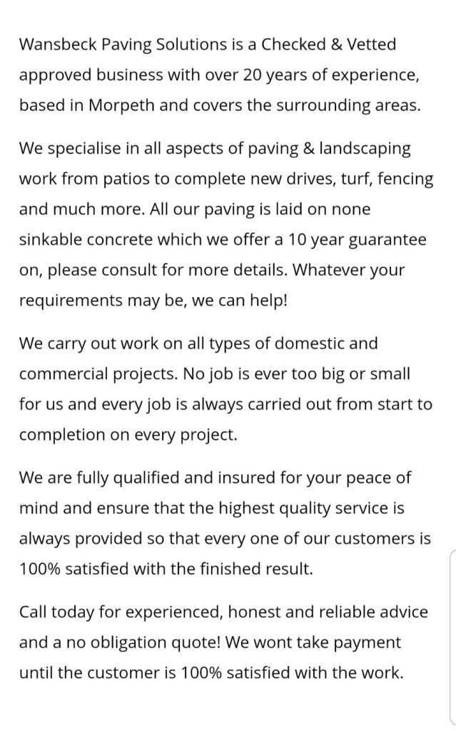 All work is carried out with attention to detail and a high standard of quality.