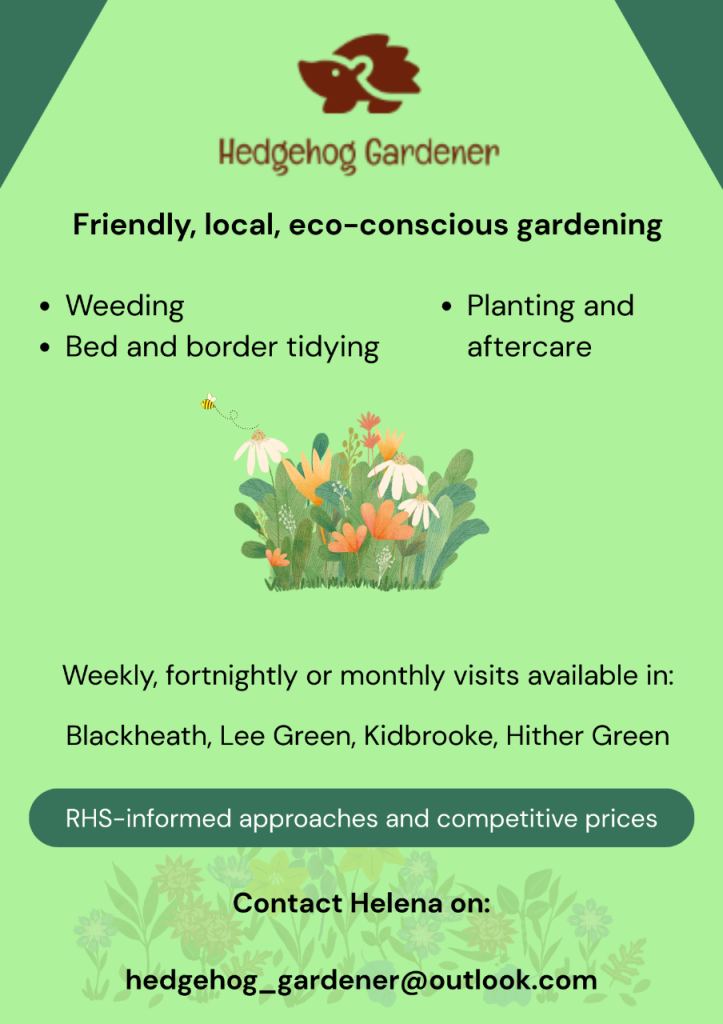 I cover the following areas: Lee Green, Blackheath, Kidbrooke and Hither Green.