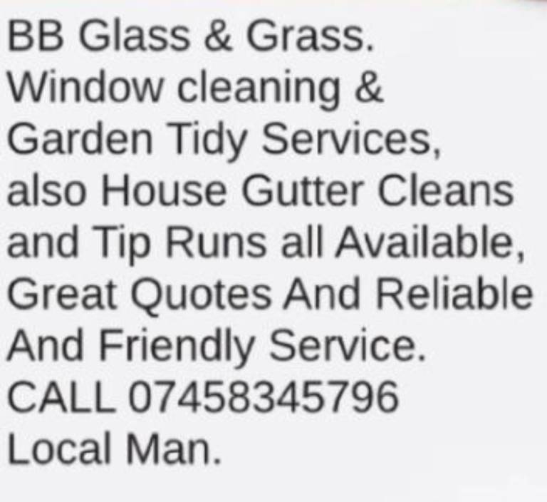 Also clean Gutters and also Garden tidies, lawn, and hedge cuts and small tipping services all available too.