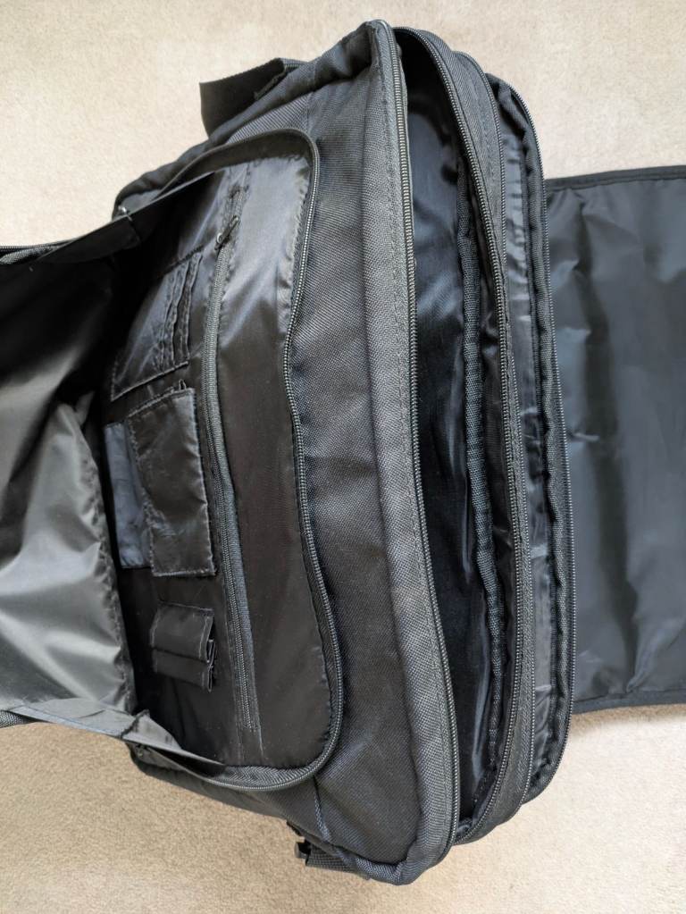 - 2 additional zip compartments, with organisers for mouse and all laptop accessories