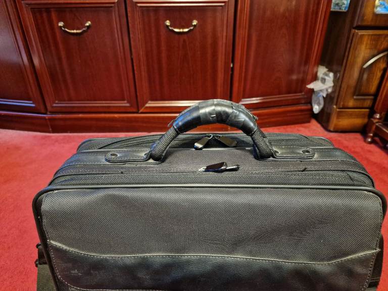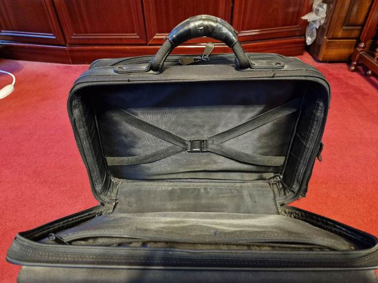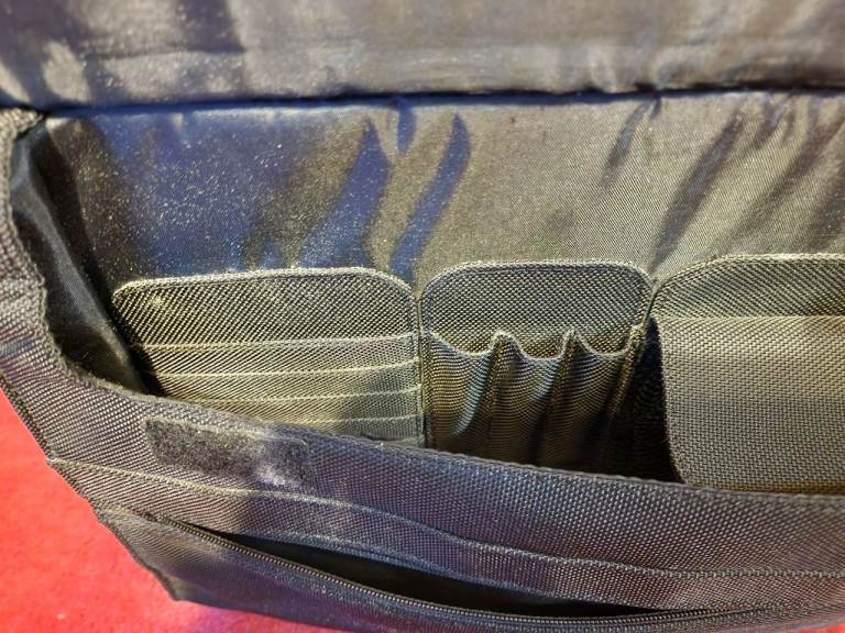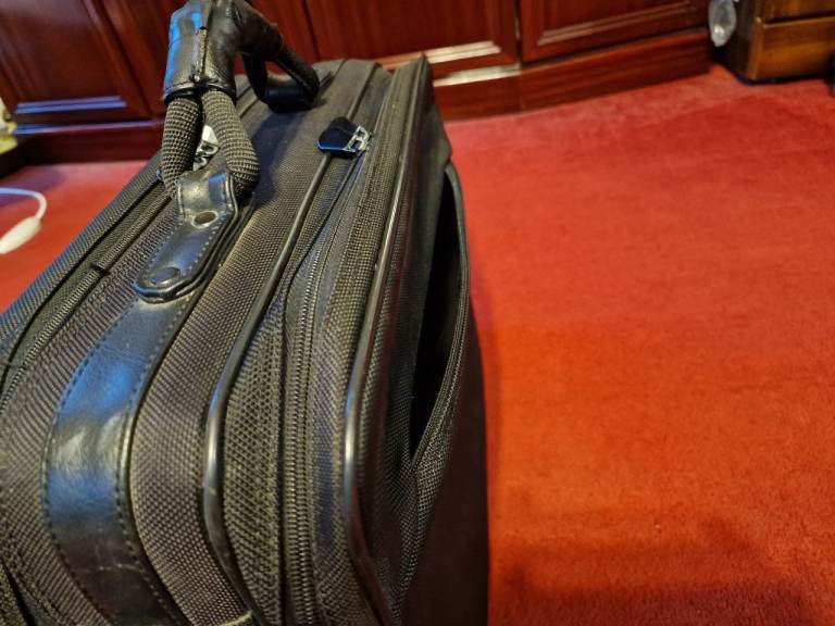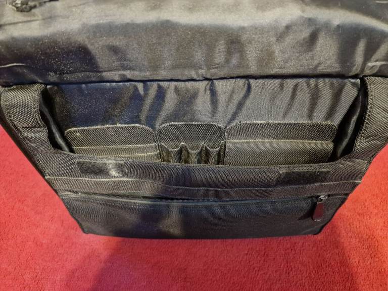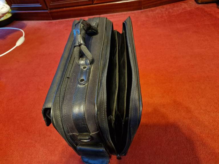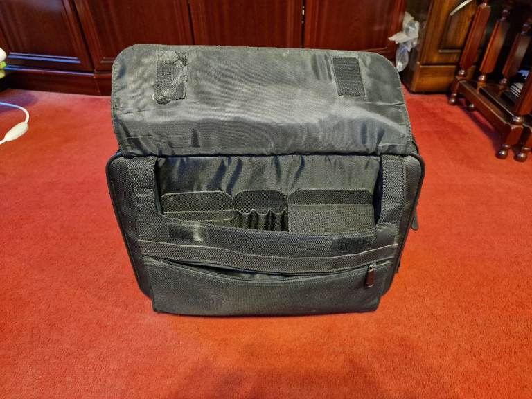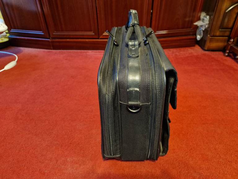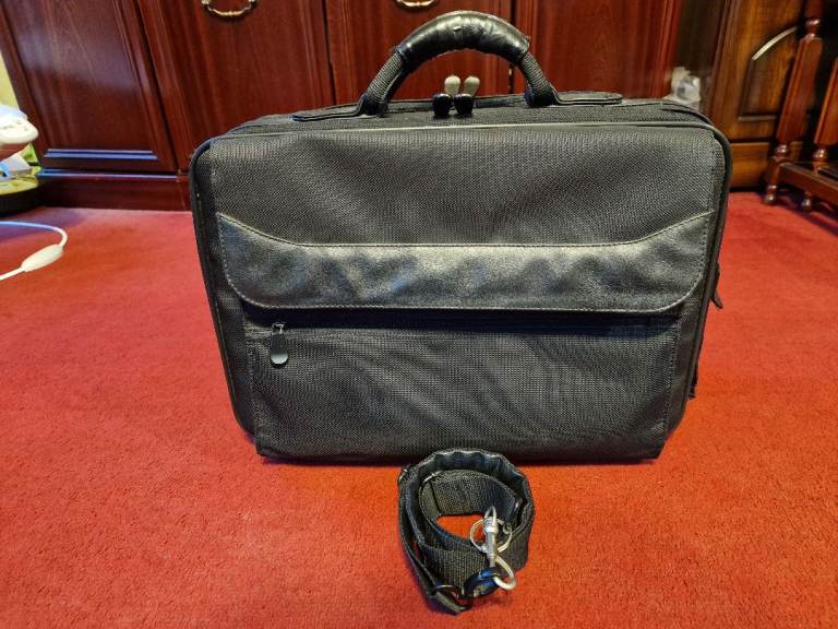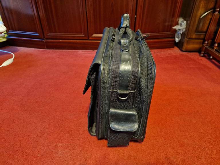Has numerous side zipped compartments for cable leads, disc's, paperwork, pens, documents, mobile phone etc. and a large compartment for your laptop.
