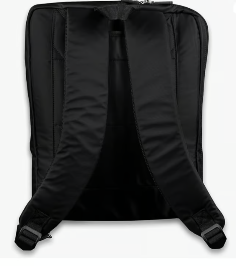 Hybrid design from traditional carry handle and shoulder strap to Rucksack with hidden straps