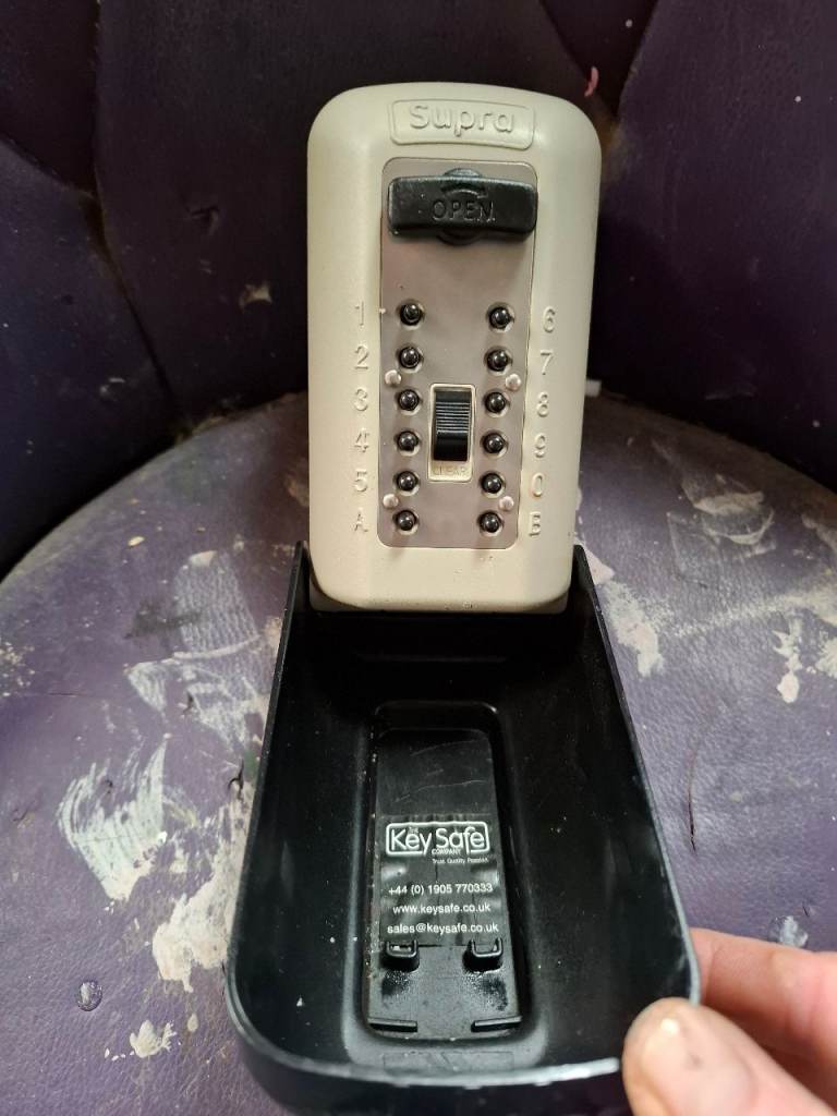 Handy metal key safe. By supra all have to do is set it with your combination £15 ovno thanks pick up please