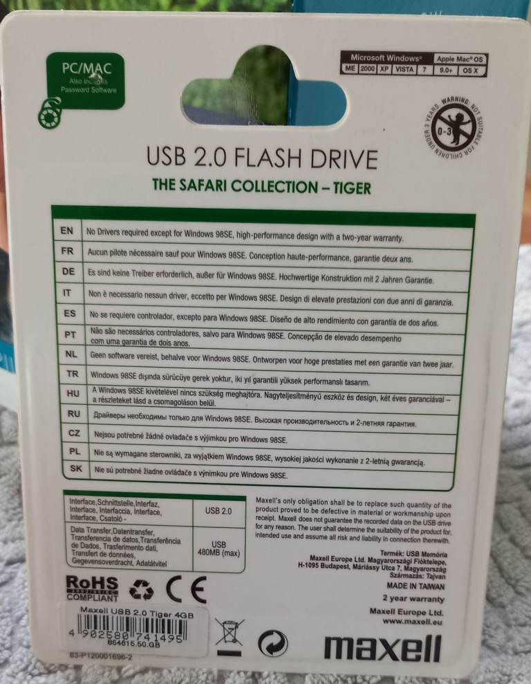 Maxell 4GB usb 2.0 flash drive safari collection, tiger. New sealed.