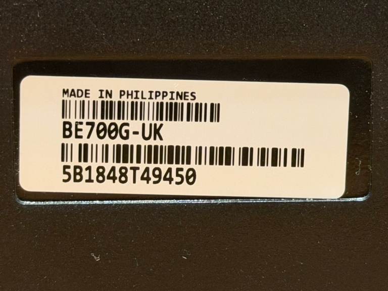 Selling as I’ve upgraded to a larger UPS. You’re welcome to test it in person and see it working. For full specifications, visit the APC website and search BE700G-UK.