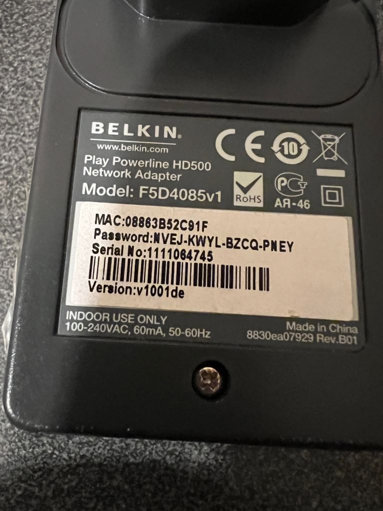 Belkin Play Powerline HD500 Network Adapter model F5D4085v1, New, unused, see the pictures please, price is Just £5, No Offers.