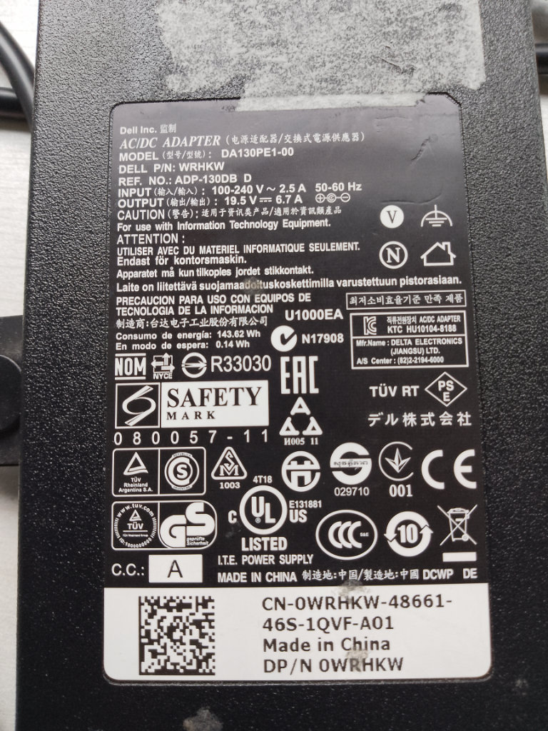 Dell charger 100-240v