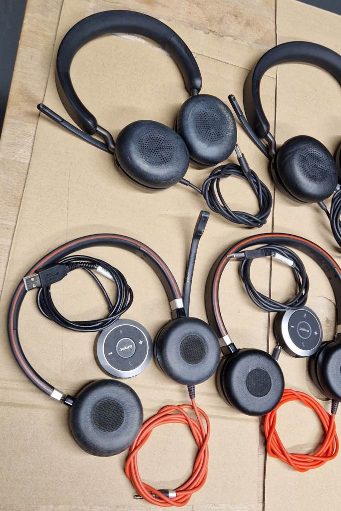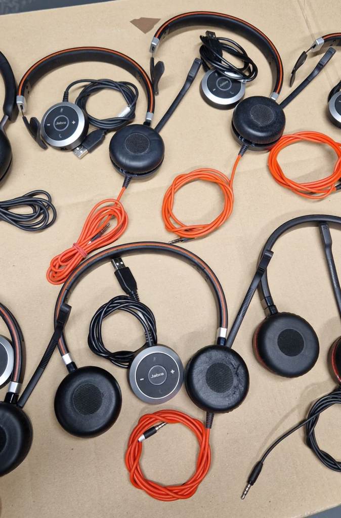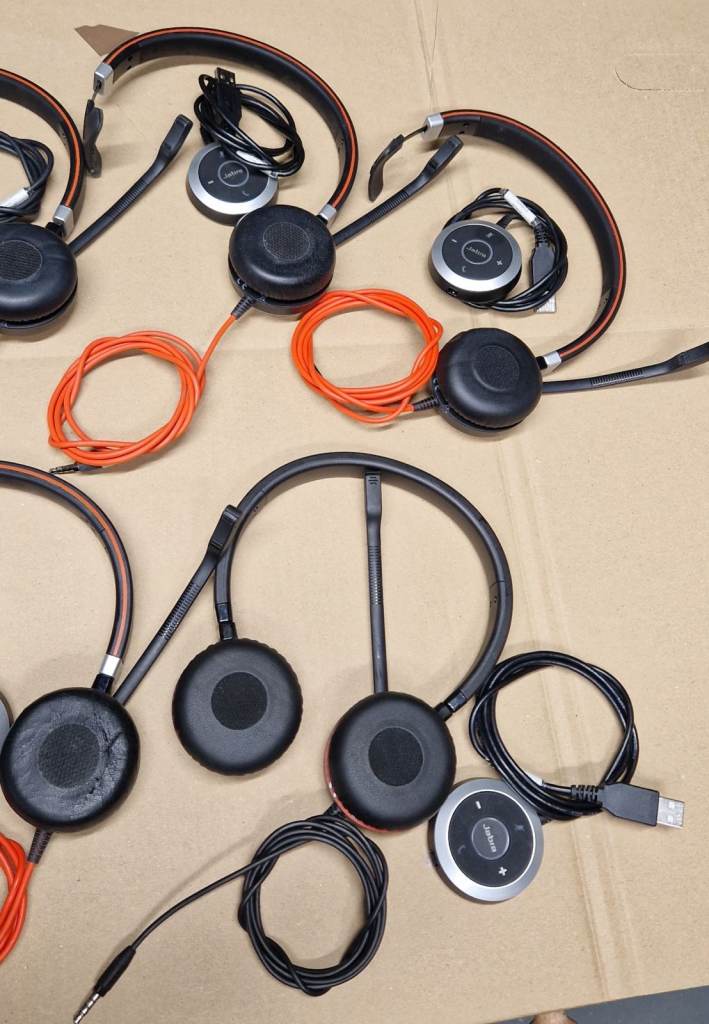 11x Joblot Jabra Evolve Headsets with Microphone & ENC010 usb adapters for jack: