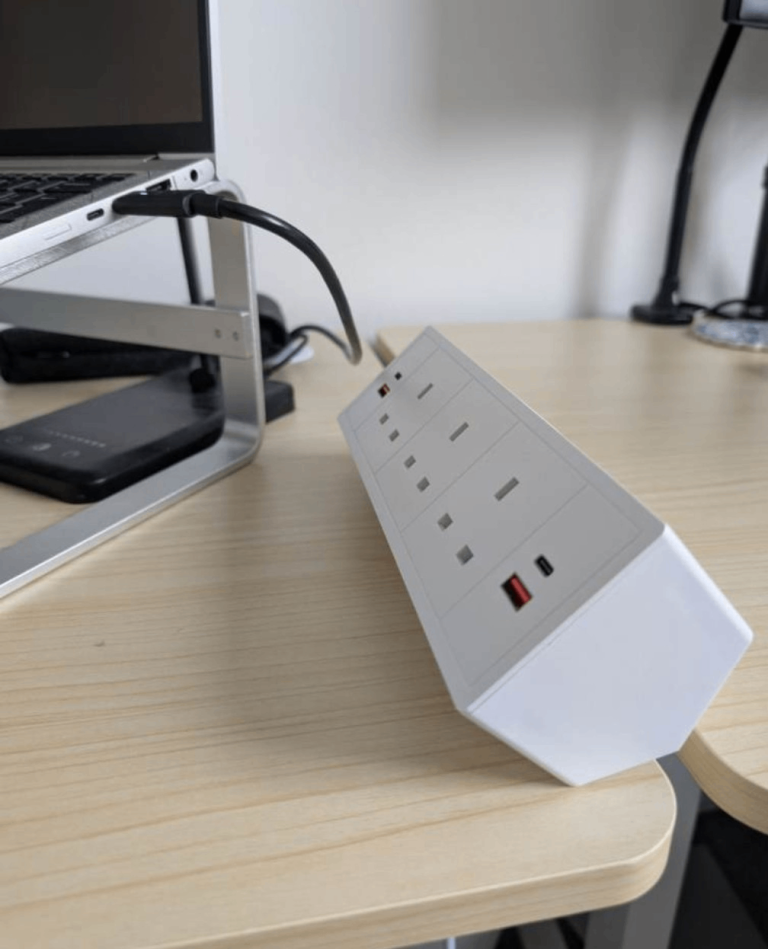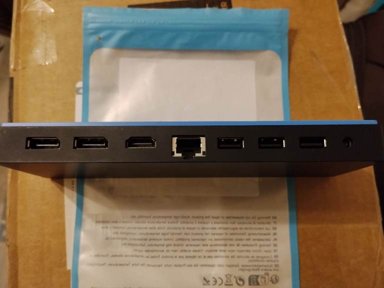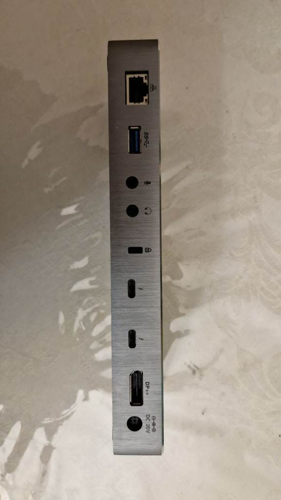 Power Input: Requires \(19.5V\) at \(4.62A\). Features: Connects via a single USB-C cable to provide multiple ports for peripherals.