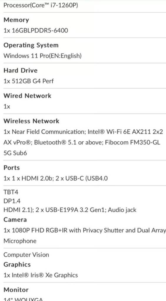 i7-1260p 12th Gen CPU