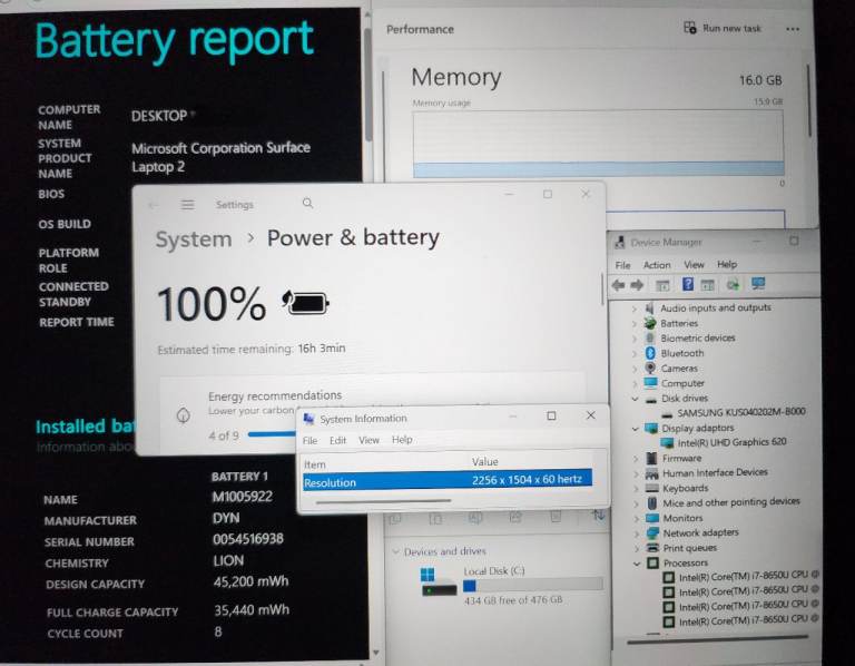 Excellent Battery Health with only 8 Charge Cycles indicating 16 standby hours.