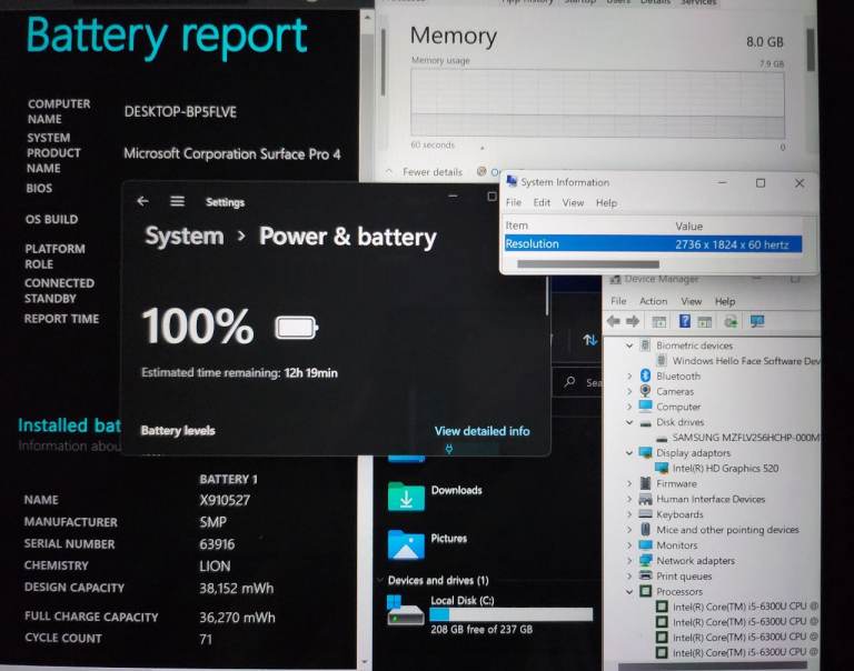 ❤️ Microsoft Surface Pro 4 12" 3K Touchscreen i5 8GB RAM 256GB SDD Laptop Tablet Keyboard *MINT* PEN