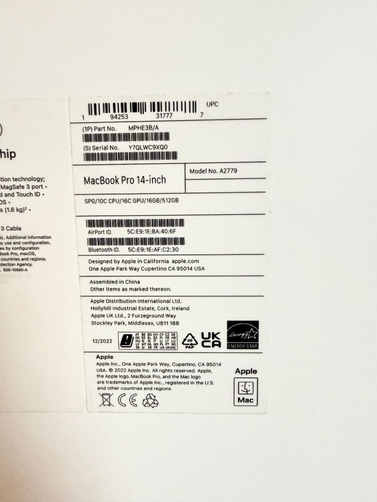 Excellent condition as new 14 Inch MacBook Pro M2 Chip. Only used for 8 months for University work/projects with hard case and silicone keyboard cover used since opening. In immaculate condition in original packaging.