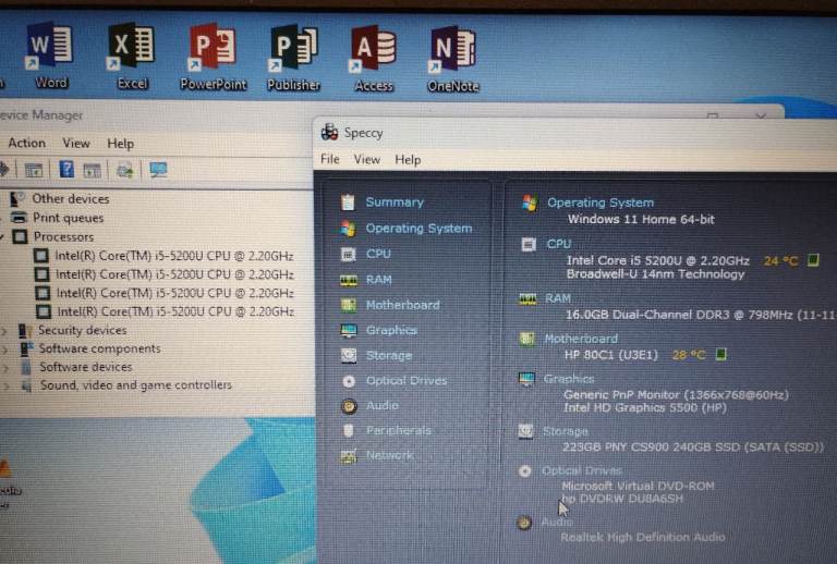 16GB RAM, HP 15.6 Windows 11 Laptop, i5, 240GB SSD, HDMI, FULL MS OFFICE, DVD