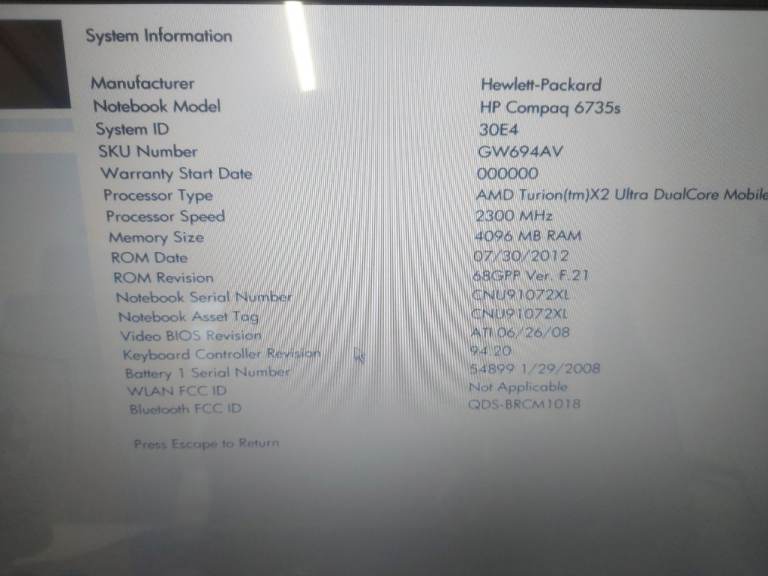 Hp 6735s zm-84 cpu 4gb ram 250gb hdd battery not holding charge otherwise all working lines on screen as shown in pics hp cq61 one cq61 no keyboard othwise compete and booted into windows no futher testing