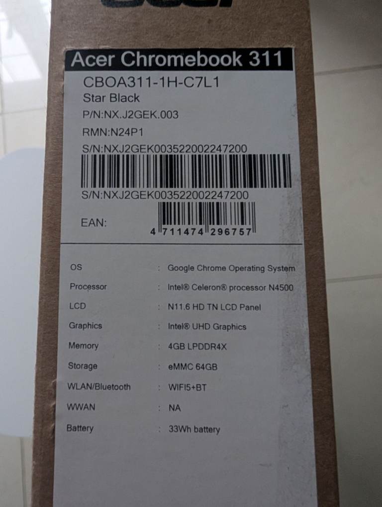 Acer Chromebook 311 CBOA311-1H Laptop - Intel Celeron N4500, 4GB, 64GB eMMC, 11.6 HD, Black-NEW