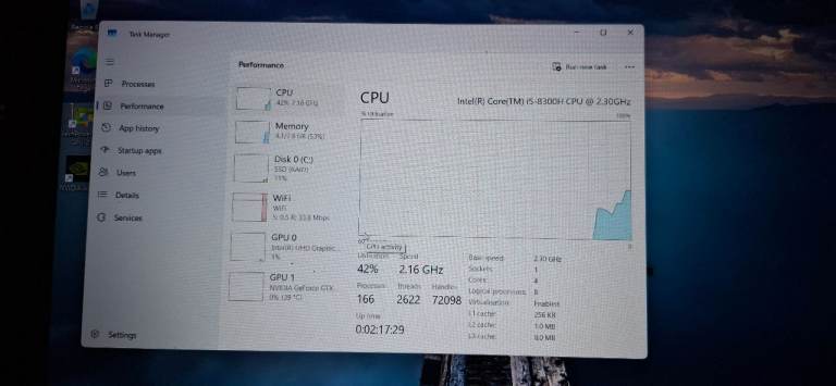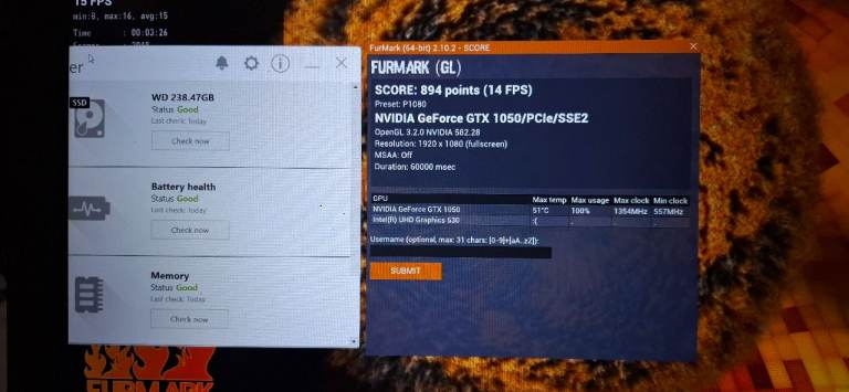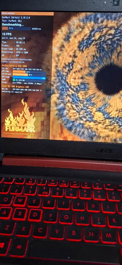 Gt1050, 8gb ram. 256gb ssd (2tb hdd) works completely fine and comes with charger. Light marks but nothing is wrong. It has brand new thermal paste in the pictures you can see the temps and they are extremely good for a laptop