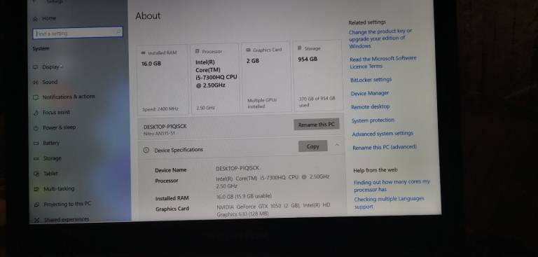 Nice clean acer gaming laptop very fast low noise gaming laptop i5 16gig ram 17.5 inch screen plays most new games new charger 1TBHard drive Has a few games etc installed can be left on or factory reset please phone for more details