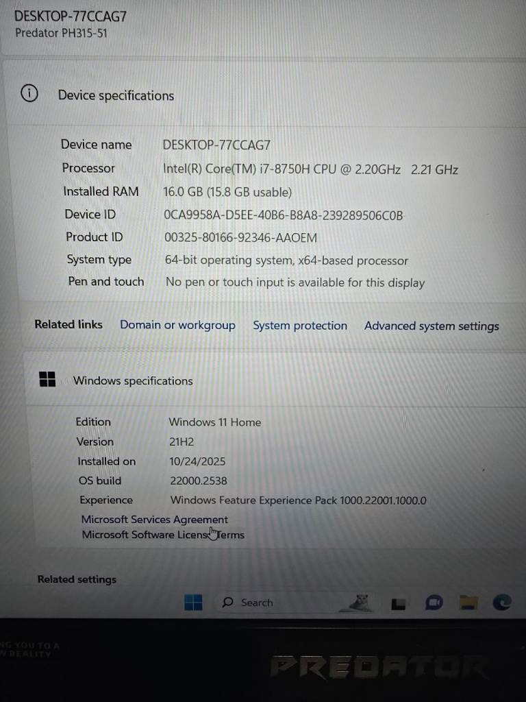 Acer predator helios 300 gaming laptop i7 16gb ram 256gb ssd +1tb hdd fresh windows 11 and Microsoft office installed ready for work delivery available for free