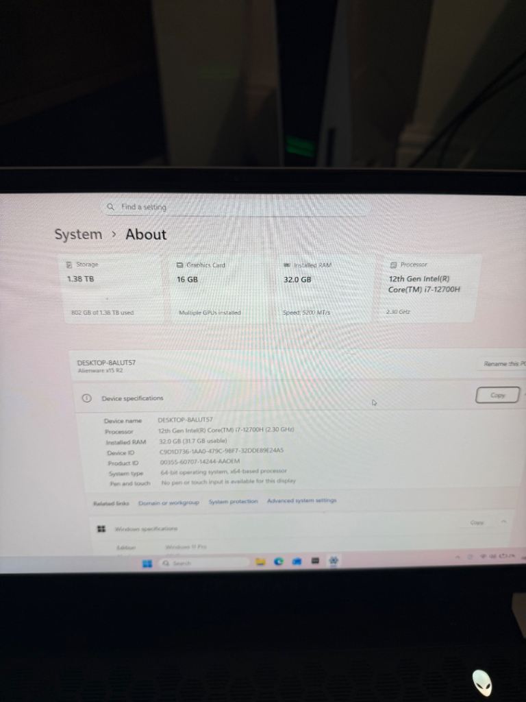 Selling my Alienware X15 R2, a high-end premium gaming laptop in very good overall condition. Extremely powerful machine, ideal for gaming, creative work, or productivity.