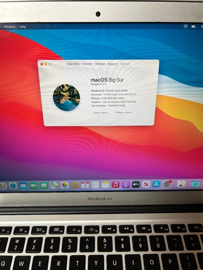 Apple MacBook 2014 13 inch 250gb storage 4 gb ram well maintained no issue works and looks great coming with original box and charger included. Ideal for daily use project office and university work, feel free to ask any questions, buy with confidence no issue guaranteed.