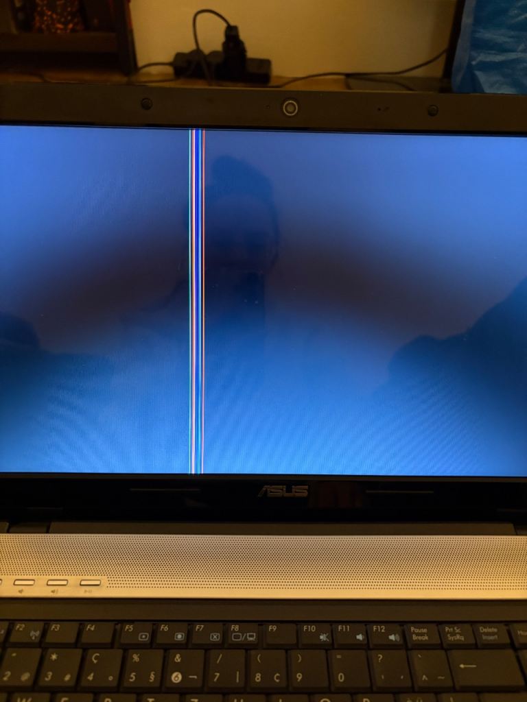 Old Asus laptop still in great working condition. Has a few lines across the screen but you can really only see them against a dark background. I used it to play old pc games on it but could probably also be used for parts.