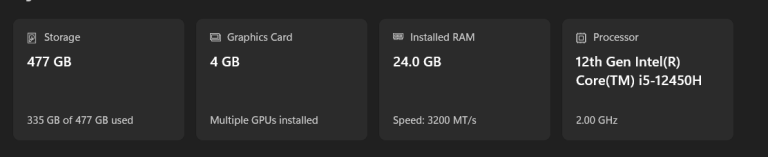 It comes with a NVIDIA built-in graphic card, RTX2050 and the best intel series i5 - H series in this mid-range. The RAM was upgraded to 24gb on the day of purchase. Please check the image of the specs