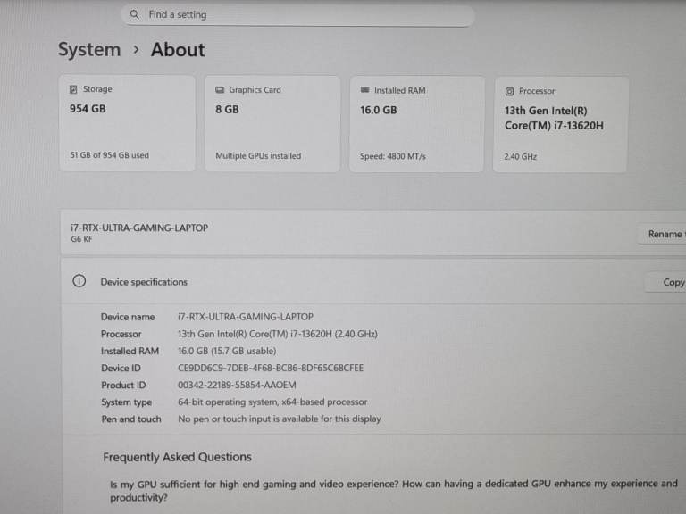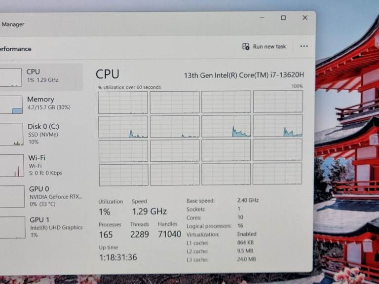 CPU: 13th Gen Intel Core i7-13620H (10 cores, 16 threads, up to 4.9GHz)