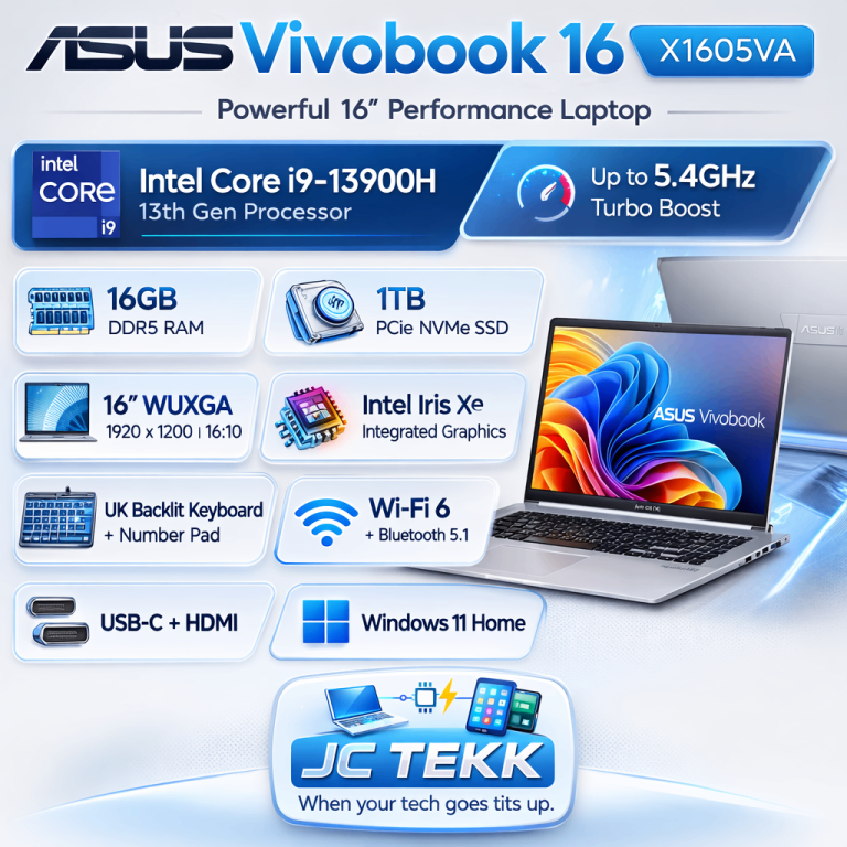 ASUS Vivobook 16 X1605VA Laptop | 16.0" WUXGA 16:10 Screen | Intel Core i9-13900H | 16GB RAM | 1TB PCIe SSD | UK Layout Backlit Keyboard | Windows 11