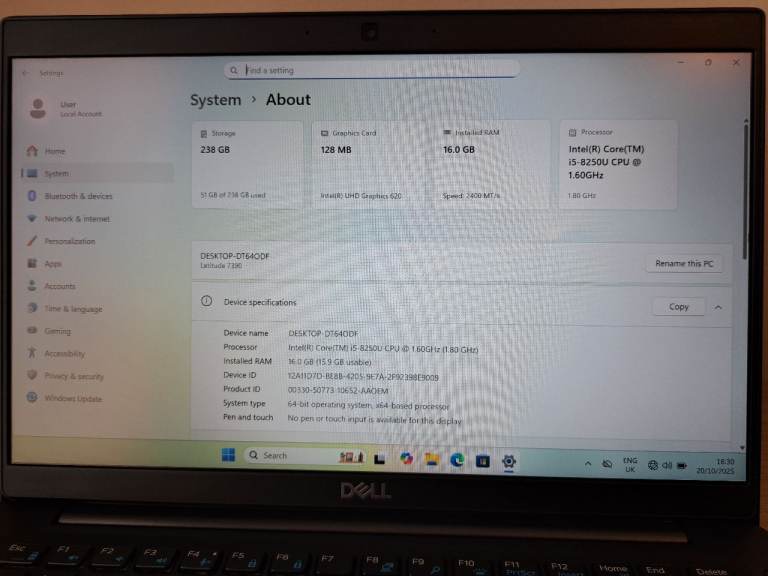 DELL Latitude 7390 - i5 8250U - 16GB Ram - 256GB SSD - Windows 11 Pro Laptop PC