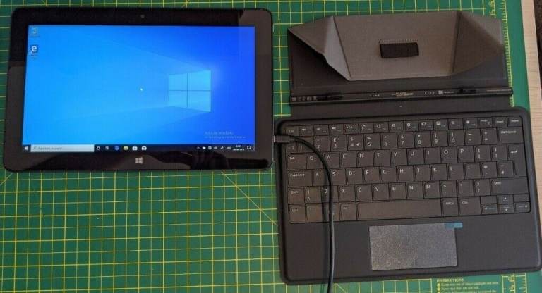It comes with the original Dell Venue 11 soft keyboard and original Dell charger. Battery health is showing as Excellent in the bios but please remember this is a used device so I cannot guarantee how long the battery will actually last.
