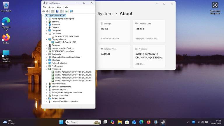 - Intel Quad Core Pentium 4415u 2.3Ghz