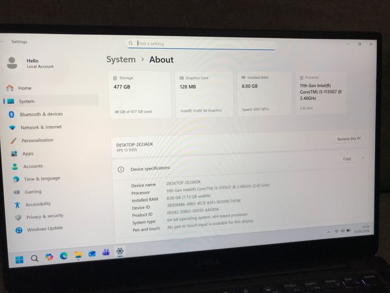 Selling mint condition good as new fully working order ! Dell XPS 13 9305 13.3 Inch 4K UHD Laptop, 11th Gen Intel Core i5-1165G7, (3840 x 2160) InfinityEdge , 8GB RAM, 512 GB SSD, Windows 11 comes with original charger and battery is excellent and hold charge as new . Prefer cash on collection or I can deliver locally free of charge for asking price. Thanks