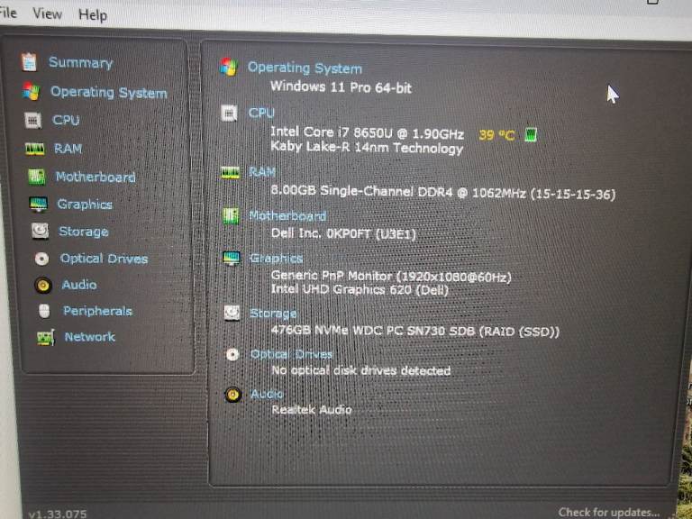 Fast i7 8th gen 1.9ghz Dell Latitude 500gb nvme hdd, 8gb ram Original battery with 89% capacity. Vrry fast reliable laptop. Usbc port. Hdmi, webcam, bluetooth, wifi. New dell charger. Add £15 if you want upgraded to 16gb ddr4 ram.