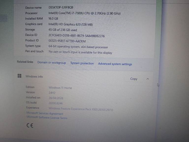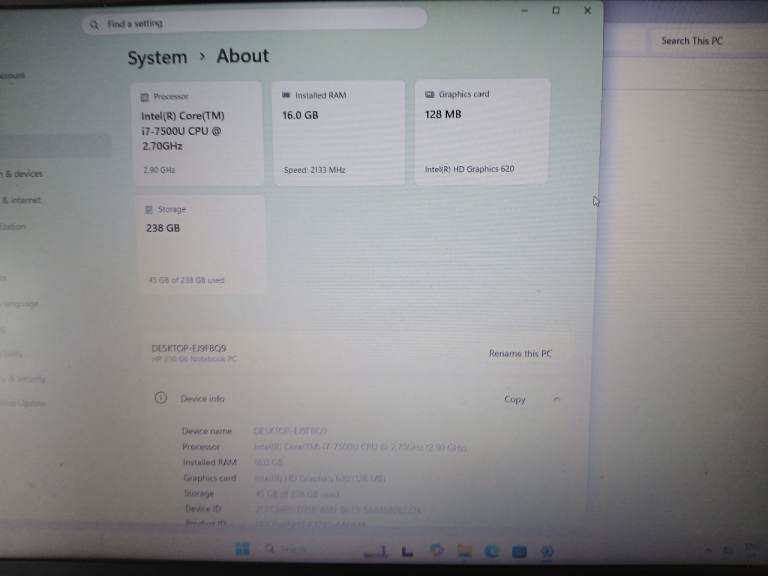 HP 250 G6 powerful laptop with i7 -7th gen. 16 GB RAM 256 GB SSD and 15.6 FHD screen