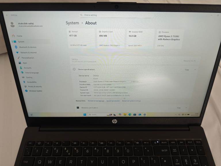 Processor: AMD Ryzen 5 7530U with Radeon Graphics.