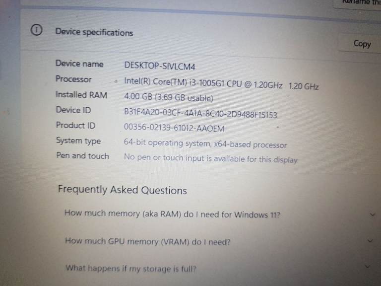 laptop hp 15s-1415na windows 11 intel core i3-1005g1 120ghz 4g memory new 120 ssd hard