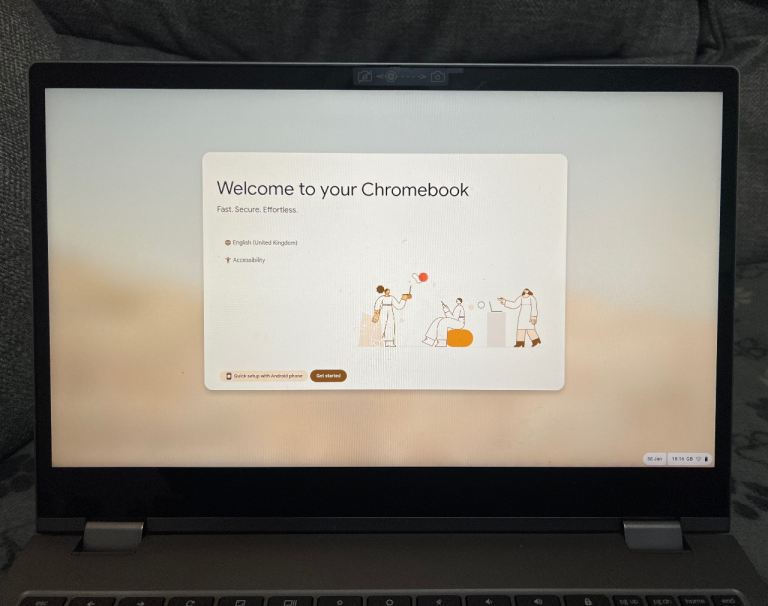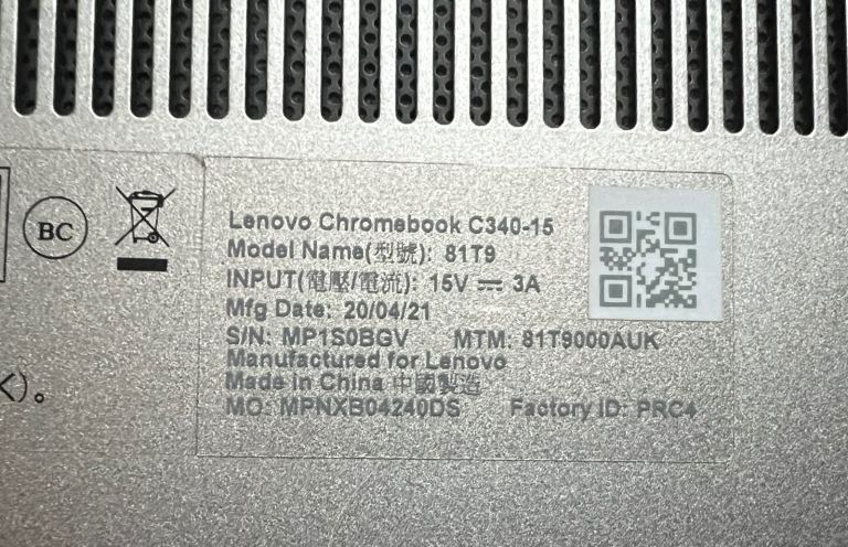 For sale, a Lenovo Chromebook. The C340-15 Laptop benefits from a 15.6" touchscreen and has 4GB of RAM, and a 64GB hard drive. It has the Chrome OS, and comes with its charger.