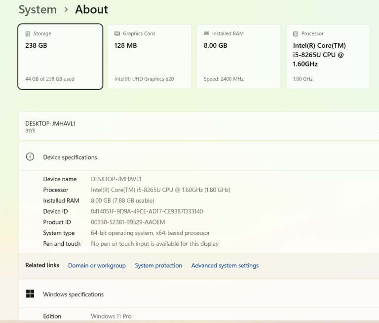 Intel core i5-8265U @ up to 3.90GHz