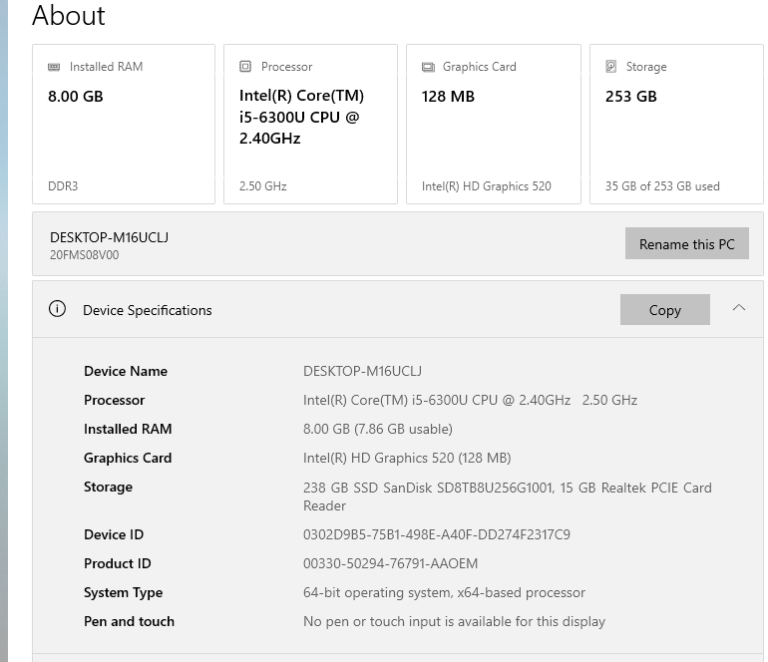 Intel core i5-6300U @ up to 3.00GHz