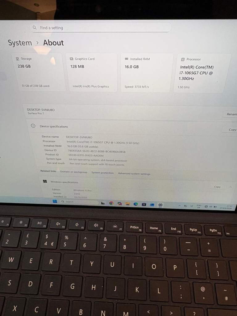 Microsoft Surface Pro 7 Intel i7 16GB RAM 256GB SSD