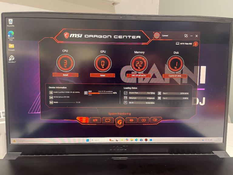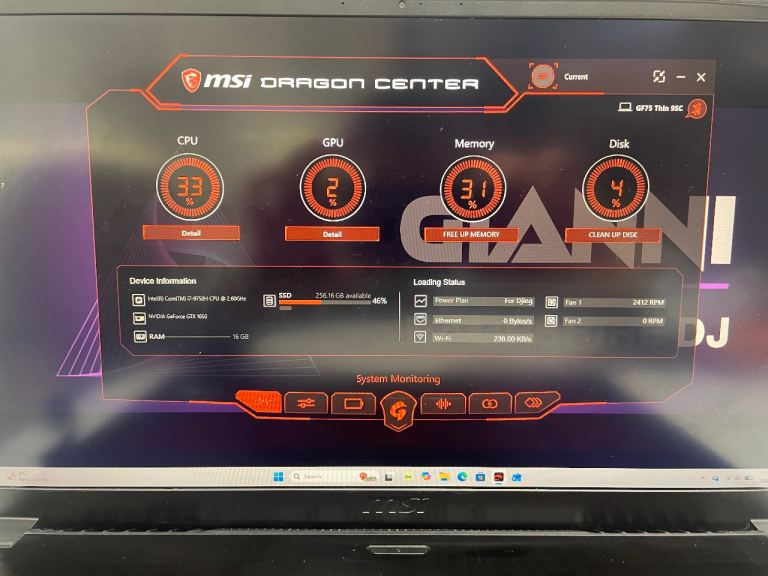 Powerful MSI GF75 Thin 9SC 17inch gaming laptop used for DJing.
