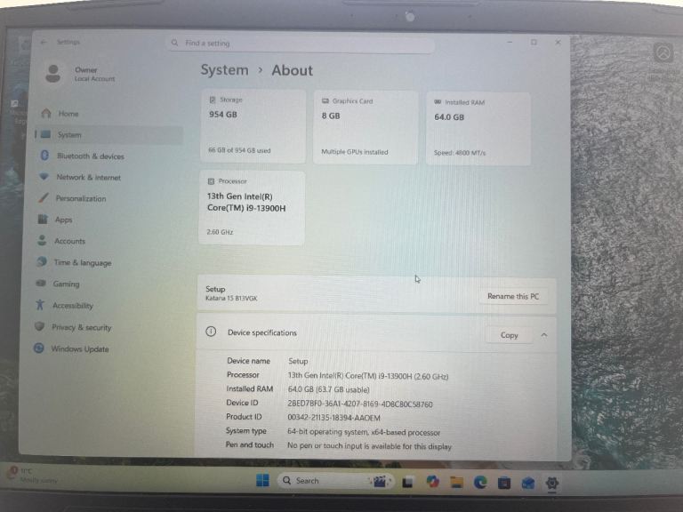 Posting for under a monthMSI Katana 15 B13V – i9 13900H / RTX 4070 / 64GB RAM / 1TB SSD / 144Hz