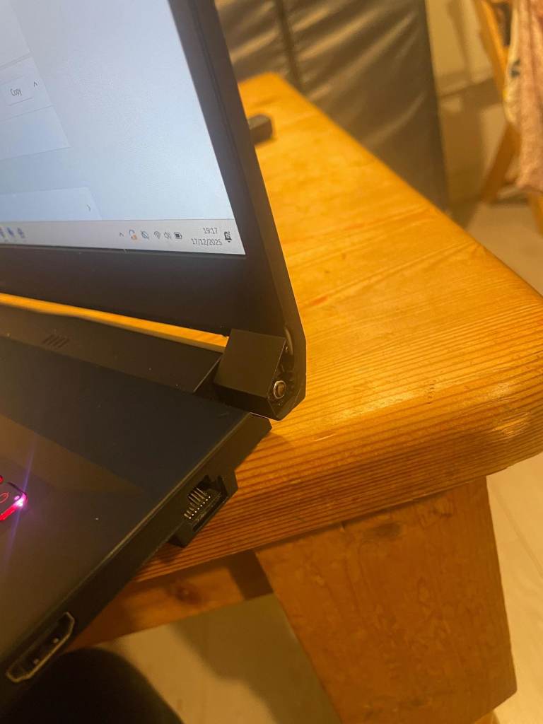 Minor cosmetic issue: chip on the right hinge (purely cosmetic, does not affect usage or screen movement)